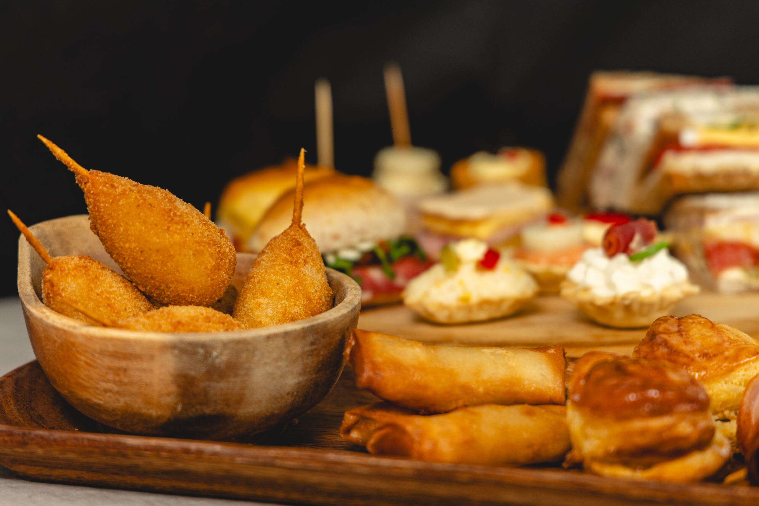 Servicio de lunch a base de bocaditos fríos para 50 personas, calculado para eventos con una duración de 2 a 3 h.