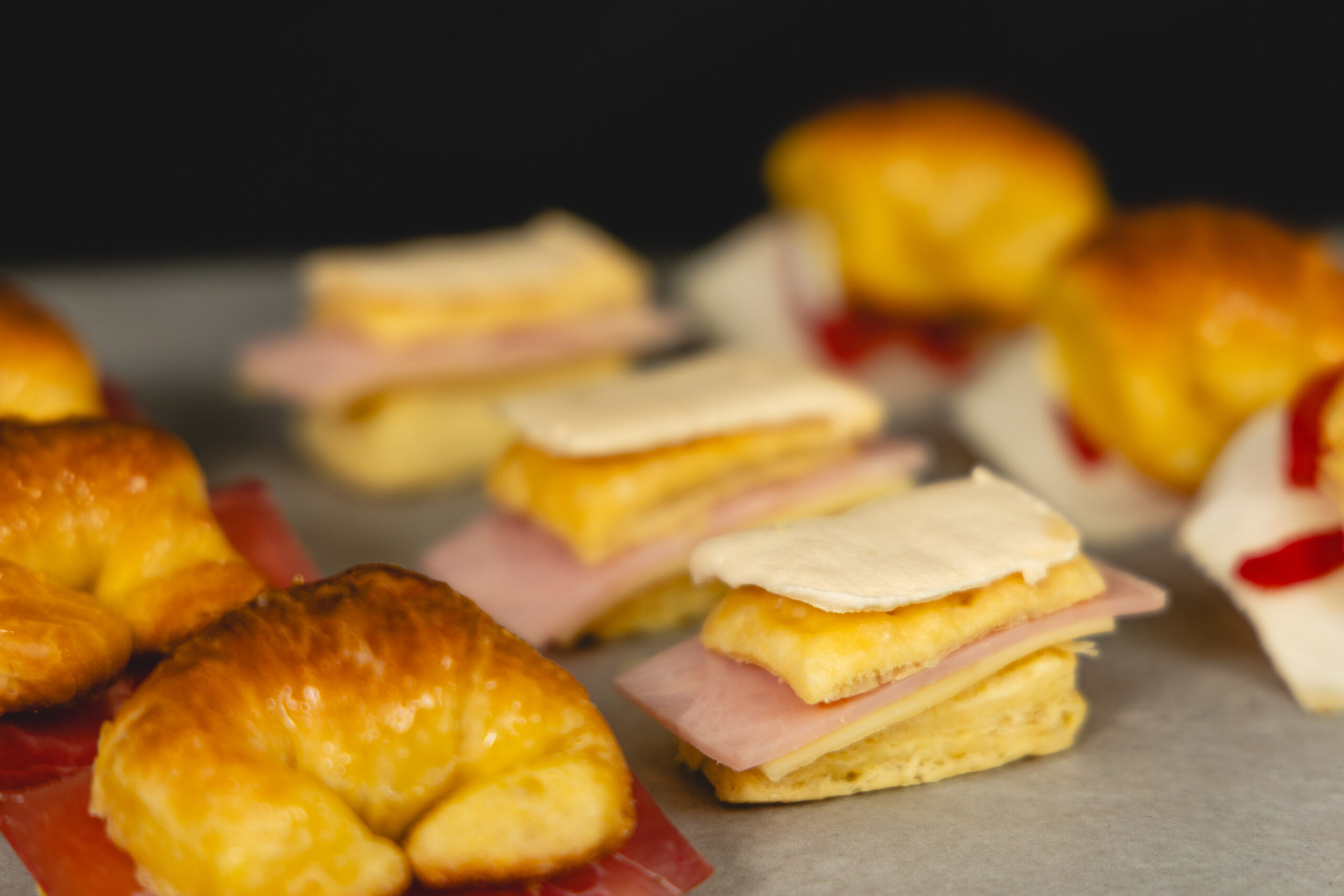 Pastel de masa de hojaldre con cubierta azucarada rellenos de jamón y queso.